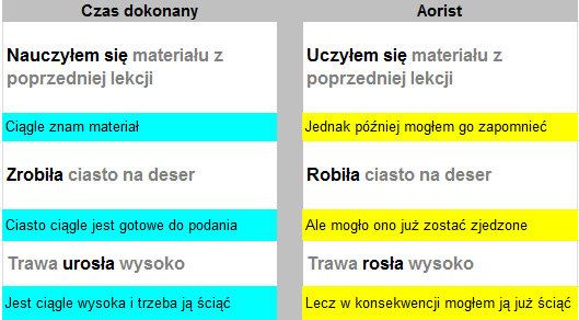 W lekcj 2 pierwszego kursu odnotowaliśmy trzy rodzaje akcji: liniową, punktową i o trwałym skutku. Czas Dokonany wskazuje na trwający skutek.