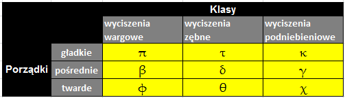 Gdy rdzeń rozpoczyna się twardym wyciszeniem, θ, φ, or χ, wtedy reduplikacja jest nieco inna, choć nadal przewidywalna.