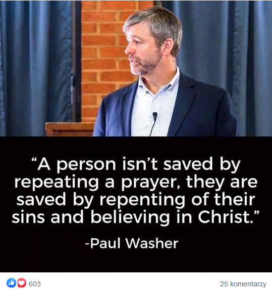 „Osoba nie jest zbawiona powtórzeniem modlitwy, ludzie są zbawieni pokutą z ich grzechów i wiarą w Chrystusa”