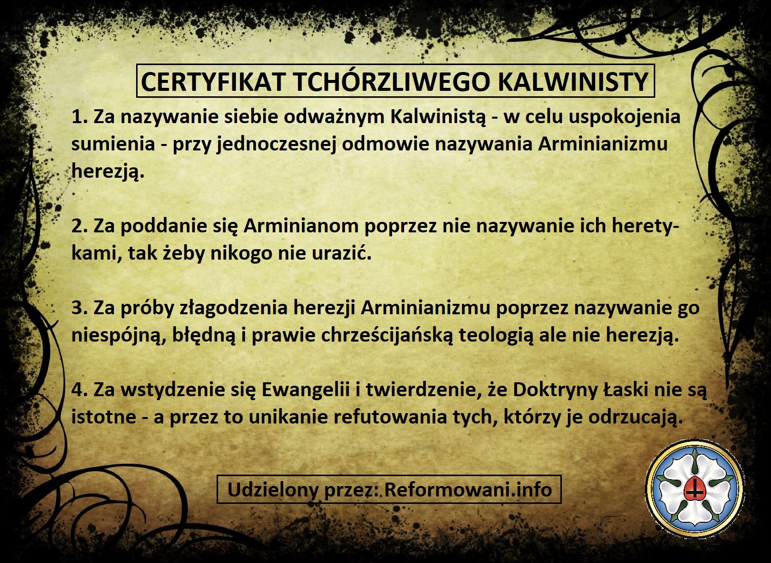 Certyfikat tchórzliwego kalwinisty